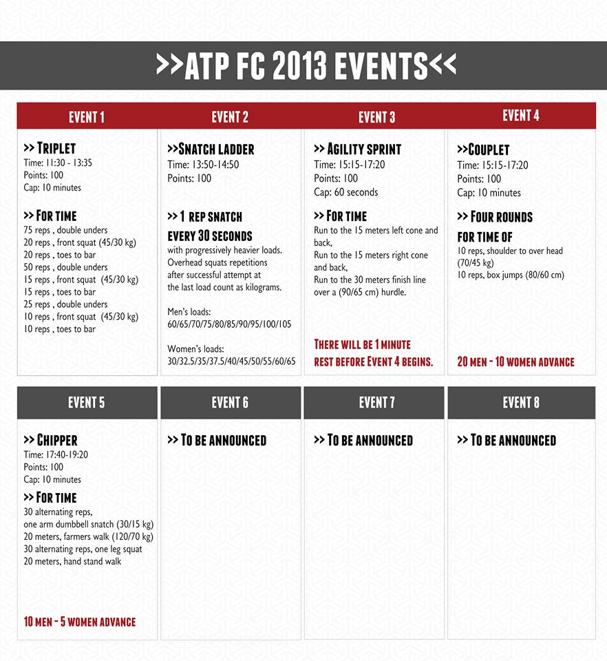 Μόλις 2 ημέρες πριν το μεγαλύτερο γεγονός της χρονιάς του ATP FITNESS CHAMPIONSHIP 2013 και ανακοινώθηκε μόλις και το 1ο Event, ένα απαιτητικό Triplet.