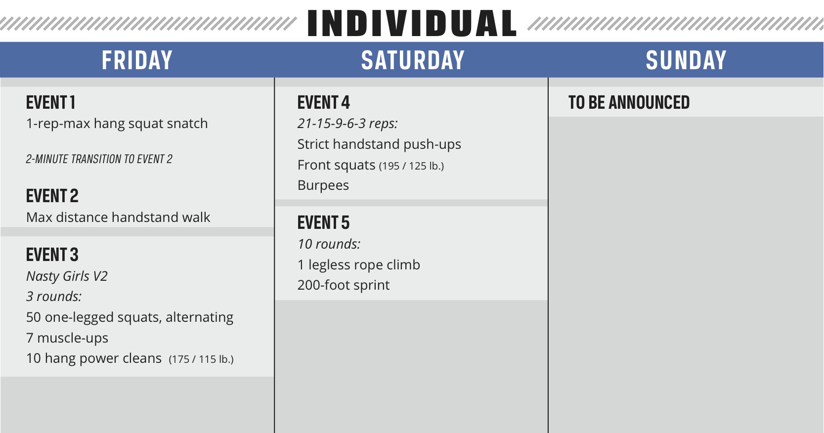 8 ημέρες έμειναν πριν την έναρξη των Reebok CrossFit Regional 2014 και ανακοινώθηκαν και τα Event της τελευταίας ημέρας.